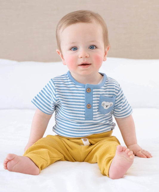 Organic Cotton Short Sleeve Bodysuit - Koala & Blue Stripes
