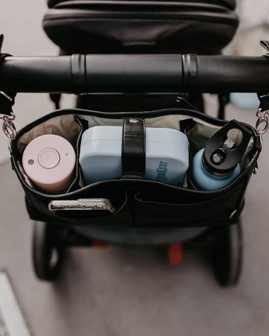 Faux Leather Stroller Organiser/Pram Caddy - Black
