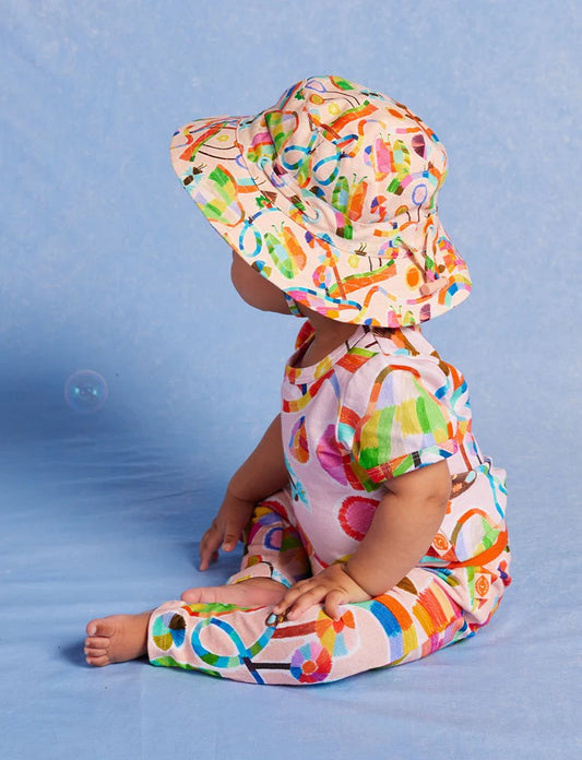 Halcyon Nights brings to life the imaginations of Kym, Reuben and their two little girls. Hours spent together at the kitchen table drawing the funny and fantastical is where this young family’s modern take on baby wear & bedding began.
