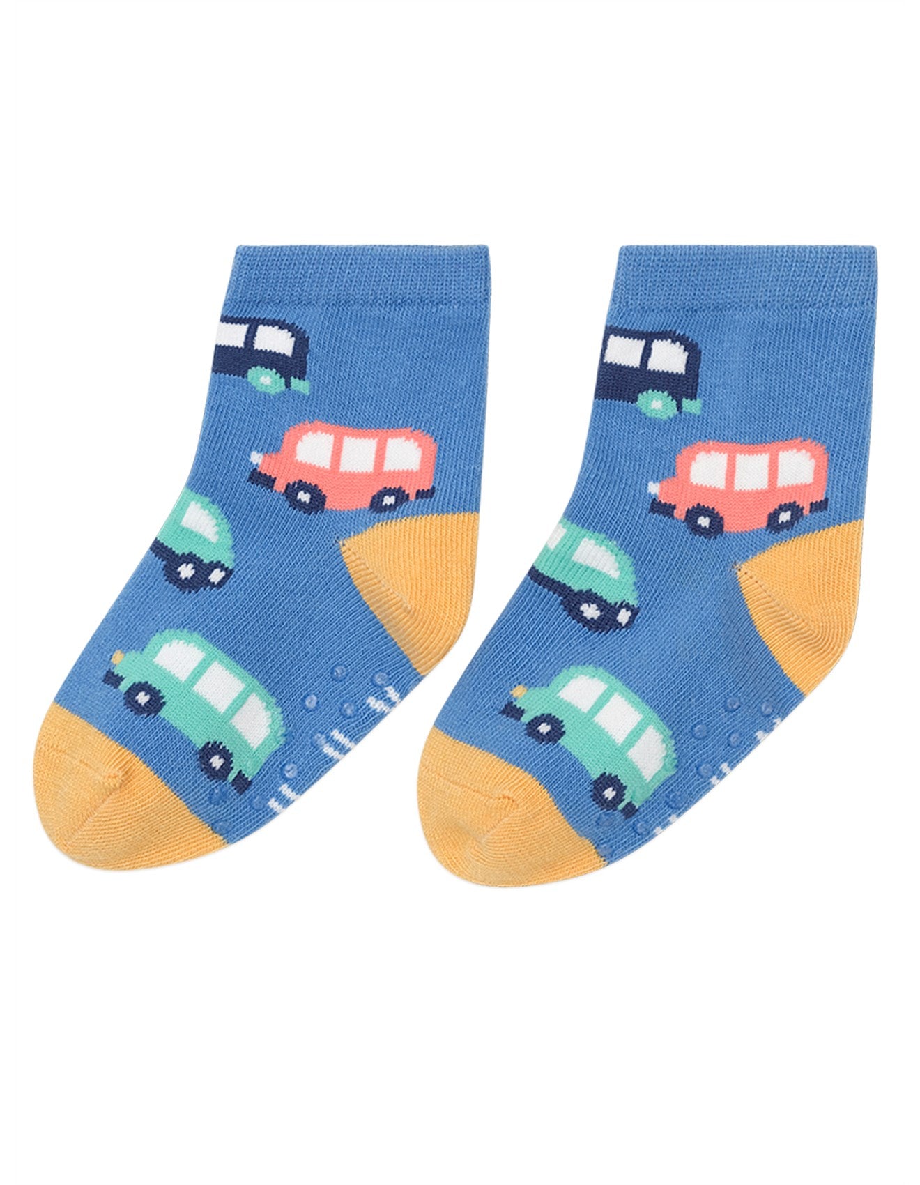 Made with a breathable blend of fibres to cushion busy feet. These colourful socks feature our custom Huxmobile print and calming shades of blue.