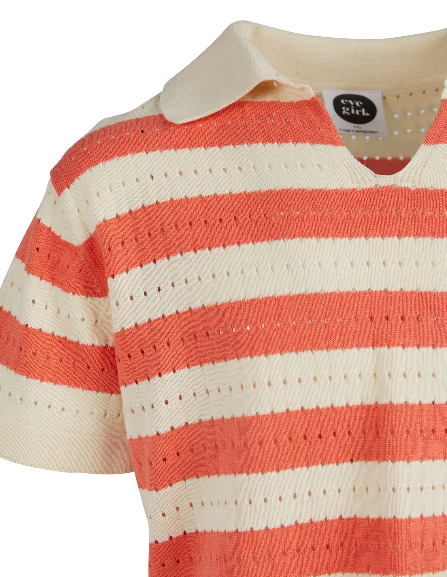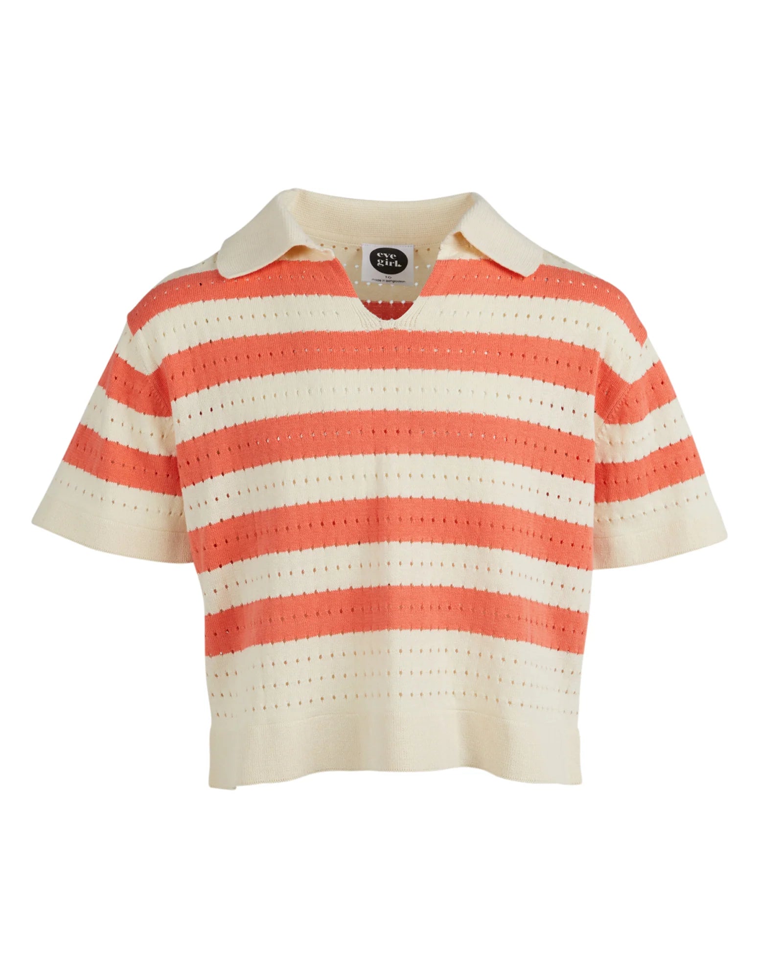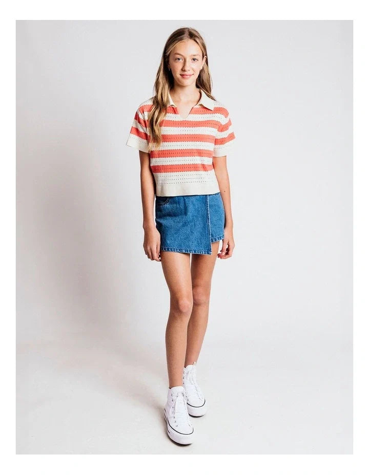 The Bella Polo by Eve Girl is a must have this season. The tee is made in a cute stripe knit pattern with a collared neck. The soft fabric and trending style makes it the perfect everyday tee for this spring.