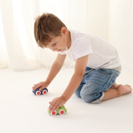 Vehicles include soft-touch EVA wheels. Made from environmentally friendly wheat-fibre plastic. Individually labeled for single unit sales.