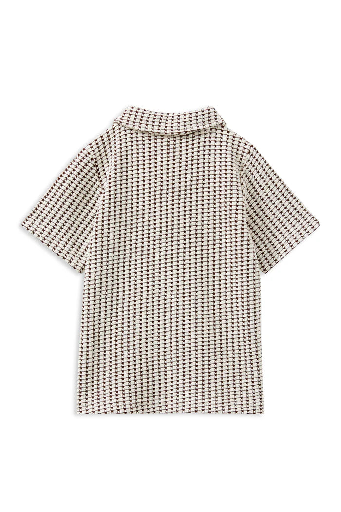 Milky Clothing Chocolate Knit Polo is a wardrobe essential that combines timeless sophistication with modern comfort. Crafted in a chocolate and cream hue, this polo offers a polished yet relaxed look that's perfect for any occasion, whether dressing up for a family gathering or dressing down for everyday wear.