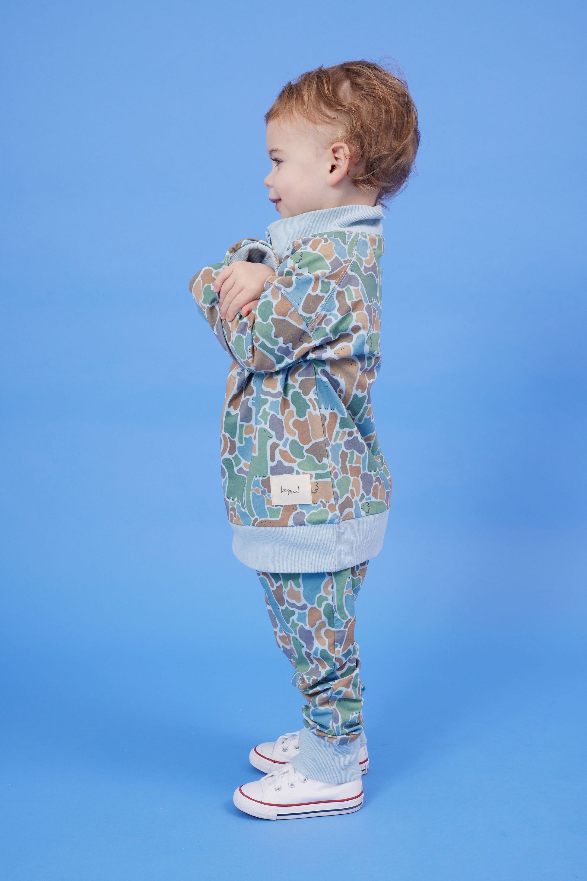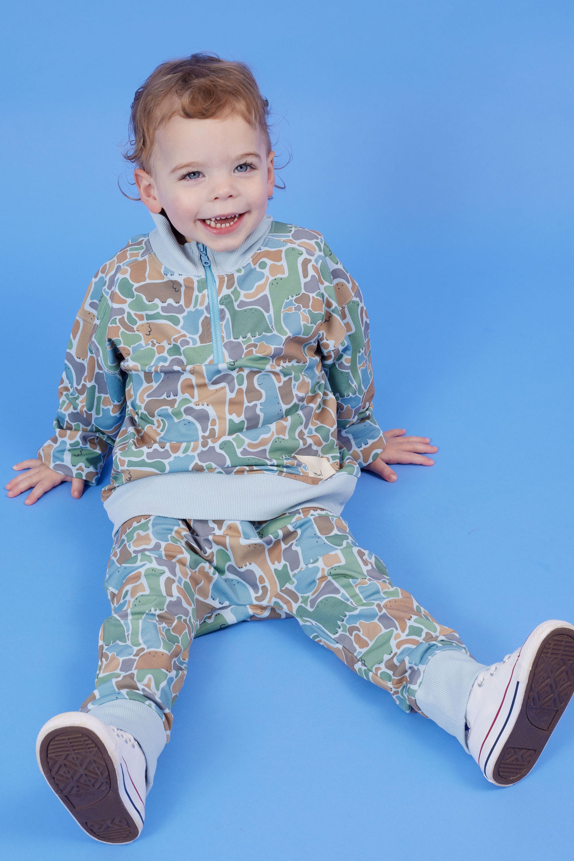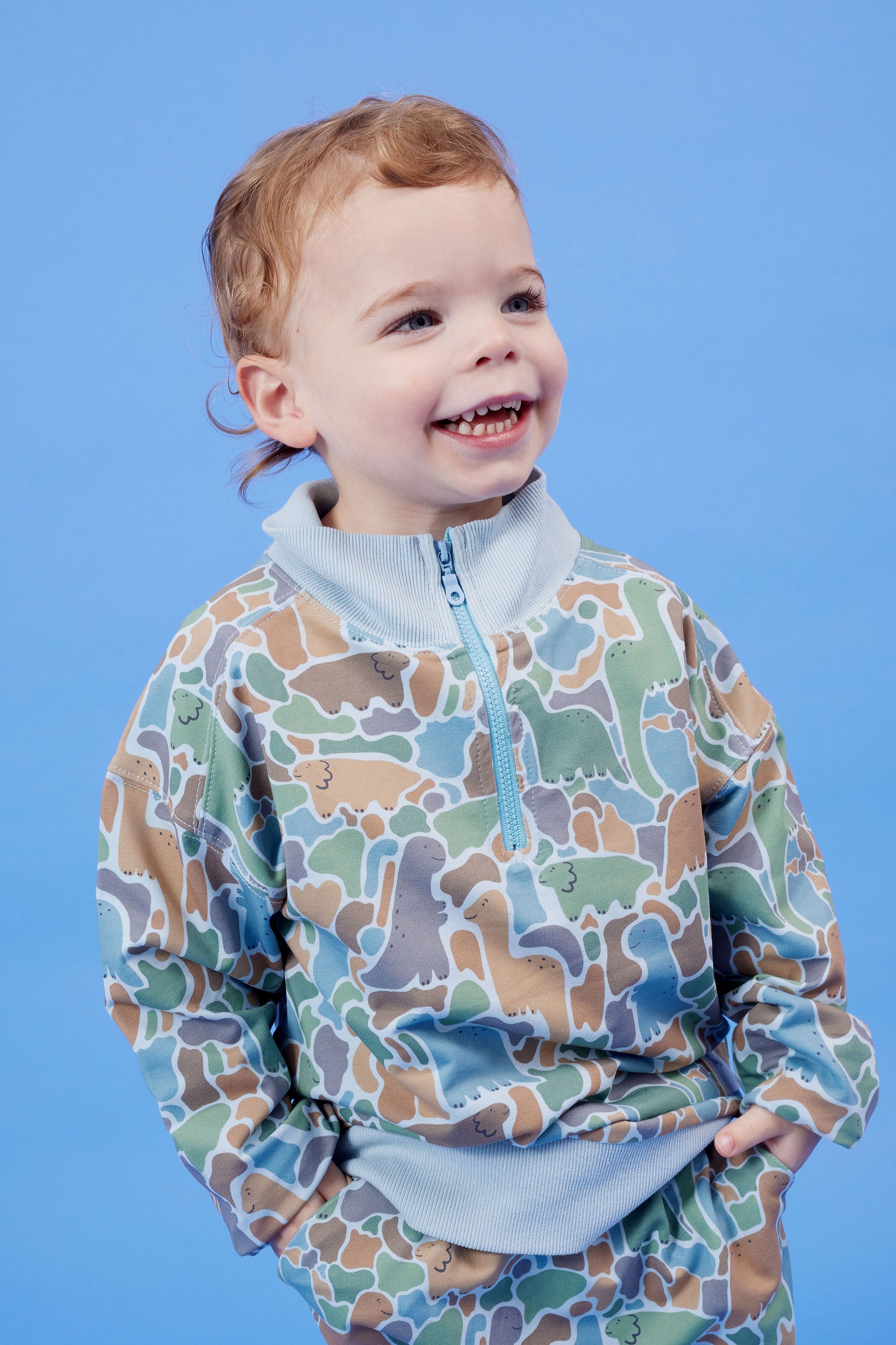 - Featuring a convenient half zip design and a Dinosaur Camouflage print, it's a must-have for any wardrobe.