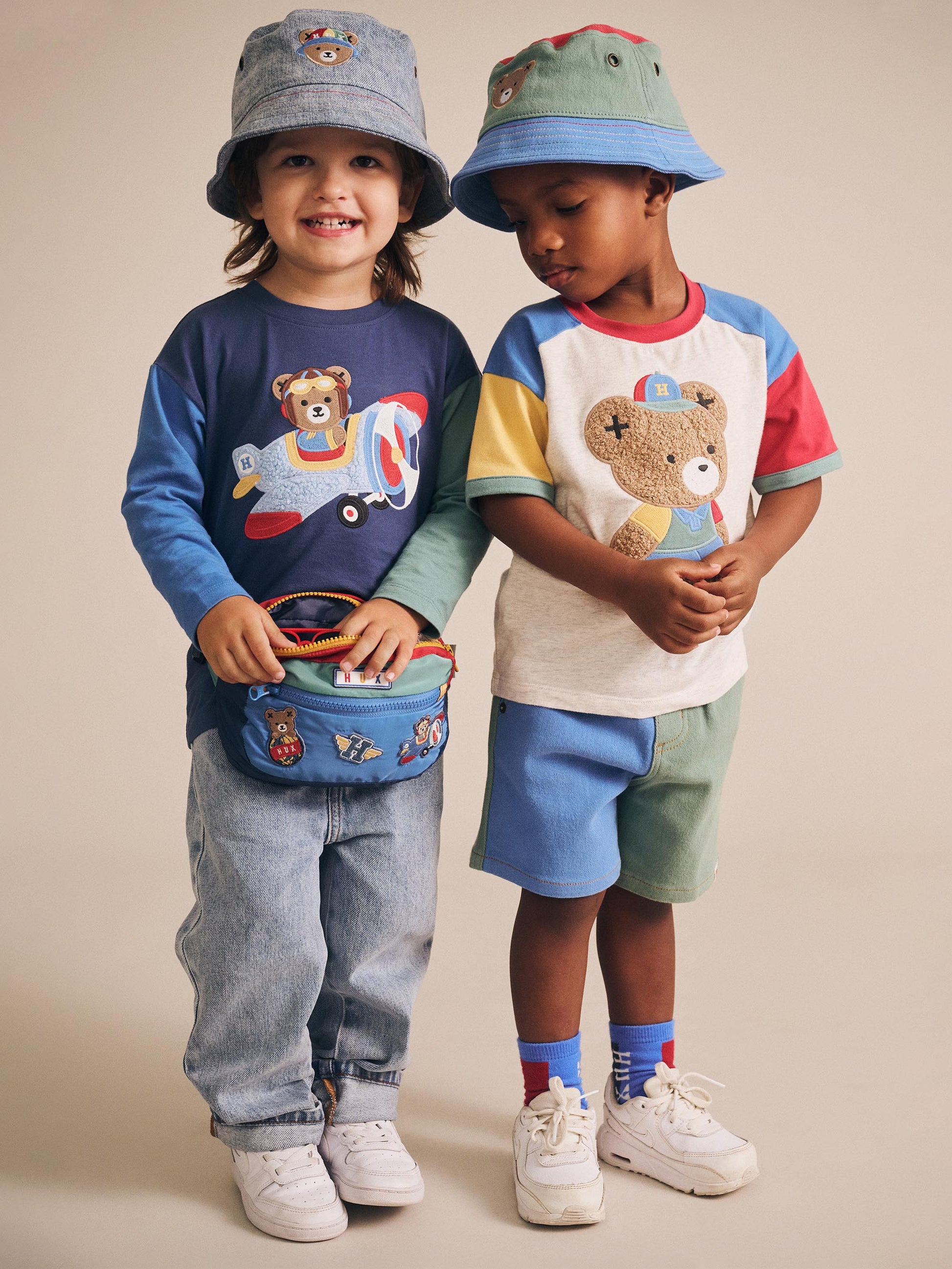 A hat they’ll actually want to wear. This dreamy denim bucket hat features a Huxbear embroidery and wider brim for extra sun protection. Fun coloured stitching detail along brim.