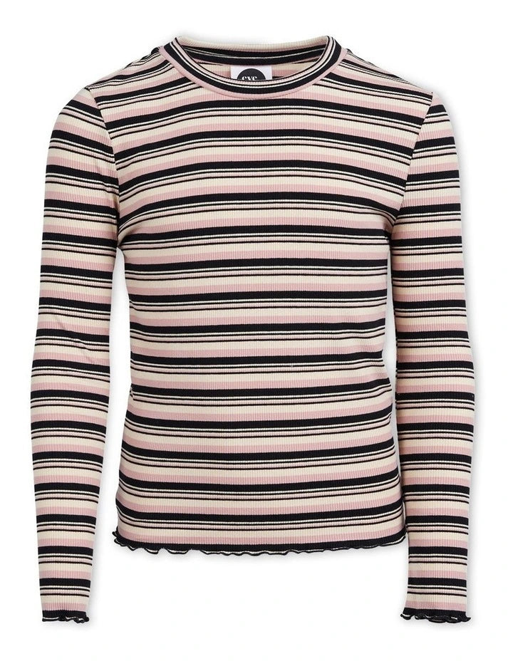 The Flora L/S Rib Tee by Eve Girl is a must-have staple for this autumn. The long sleeve tee features a classic stripe print making it easy to pair back with multiple Eve Girl bottoms. The rib fabric and lettuce leaf edging on the hem and cuffs make the top both comfortable and stylish for everyday wear.