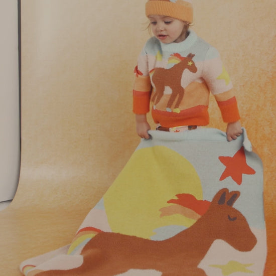 Warm fuzzies! This fluffy knit blanket is the perfect cosy companion for baby pram, cuddle and play time.
