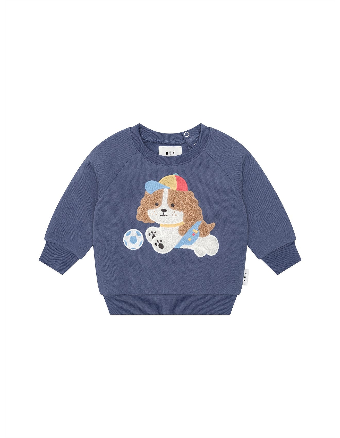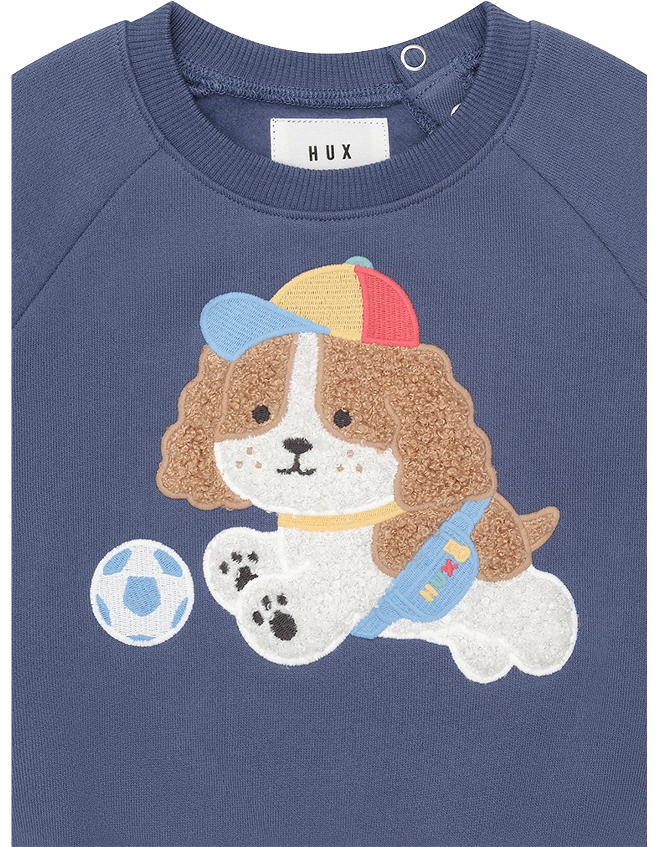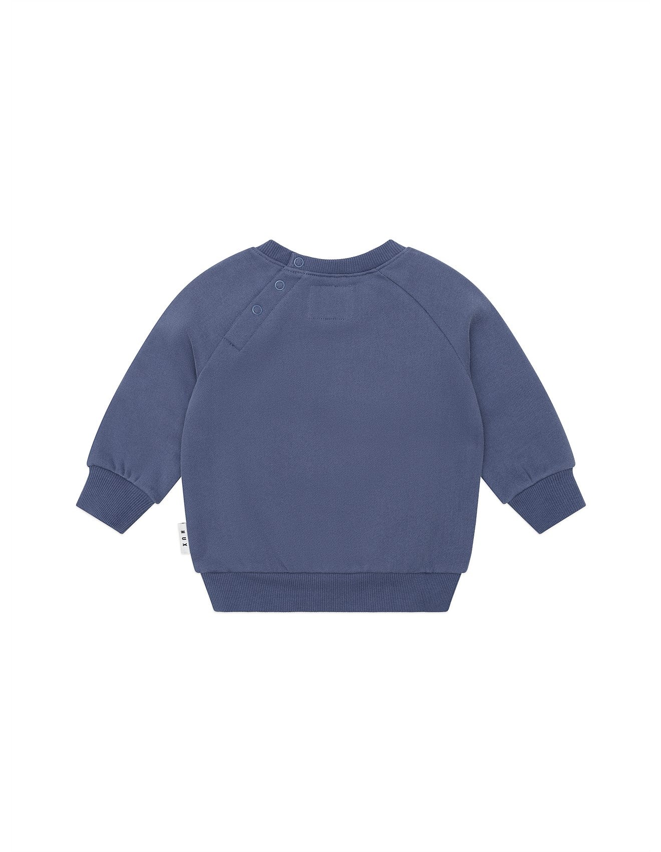 Batter up. This vintage baseball-style sweatshirt in midnight blue is made from fluffy organic cotton and features a retro Huxbear embroidery on the front.