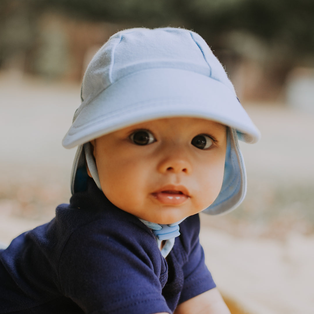 The Legionnaire hat is built for comfort - so much that kids forget they're wearing it! This makes it the best style for hat-haters and babies to wear while in prams and baby carriers. Made with super-stretchy and lightweight cotton jersey for a perfect fit keeping your little ones head cool under the hot Australian conditions & rated UPF50+ excellent protection.