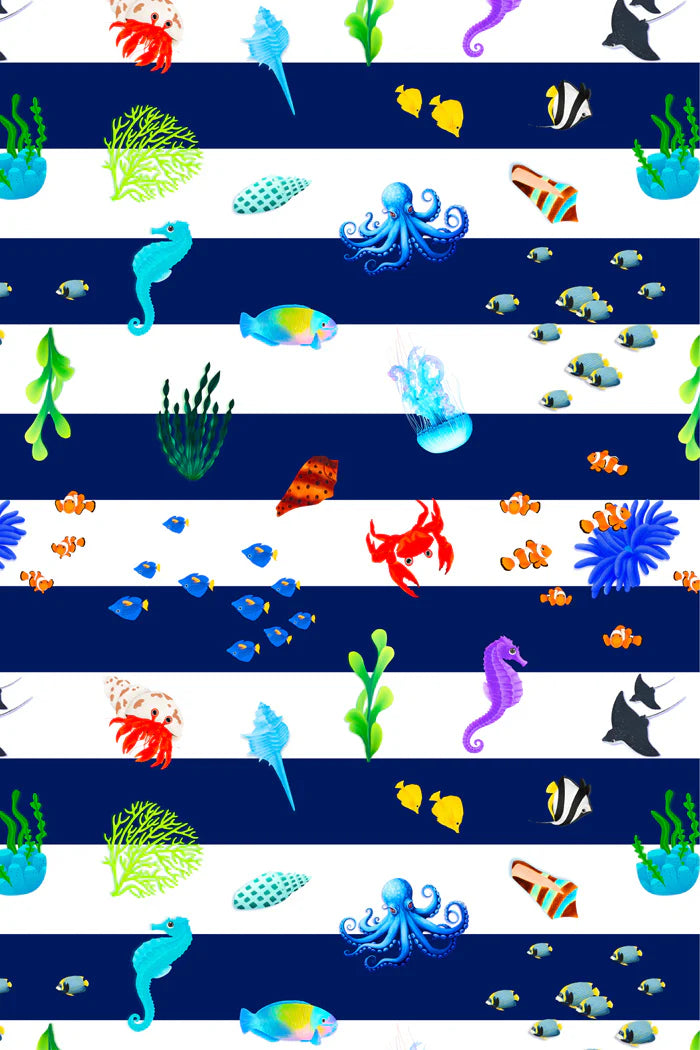 - All-over Navy and White Stripe with Marine print