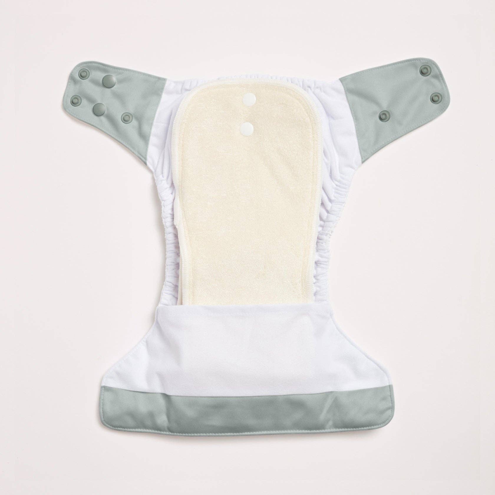 Featuring 2 internal inserts that you can easily snap in and out to mix and match based on the level of absorption required. These inserts allow you to manage changes on-the-go more easily as you can simply snap out a soiled insert ( and throw in your wet bag ) and replace with a fresh one.