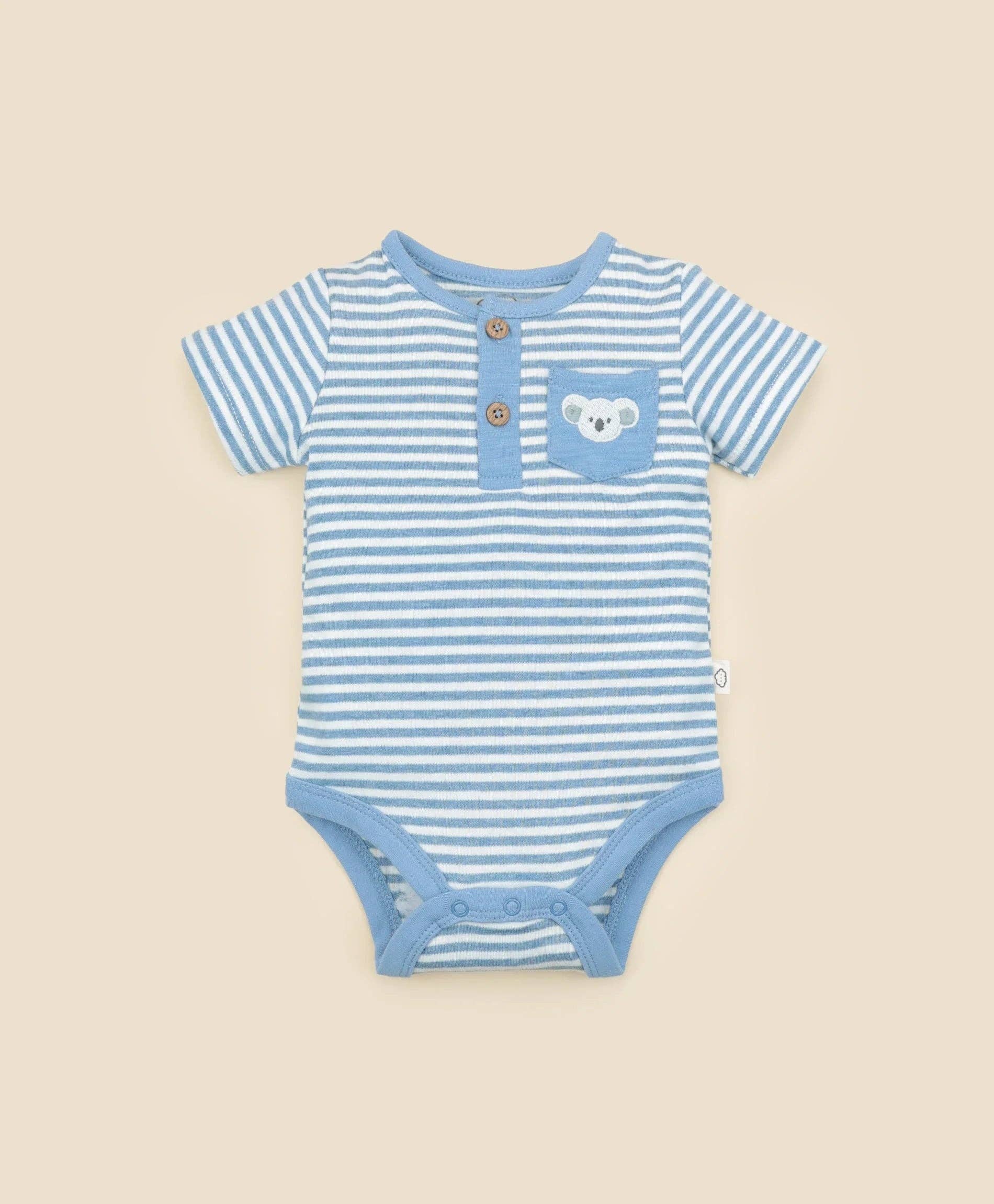 Organic Cotton Short Sleeve Bodysuit - Koala & Blue Stripes