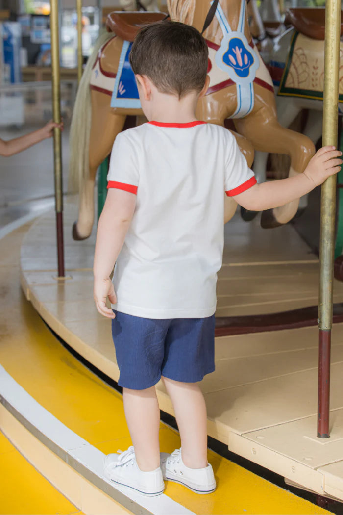 Milky Clothing Paradiso Tee is a summer must-have for your stylish little one. Featuring a cool retro front print, this tee is designed with an off-white base and red binding around the neck and sleeve openings. Whether paired with casual bottoms for a laid-back playdate or worn on outings, it offers the perfect blend of comfort and style.
