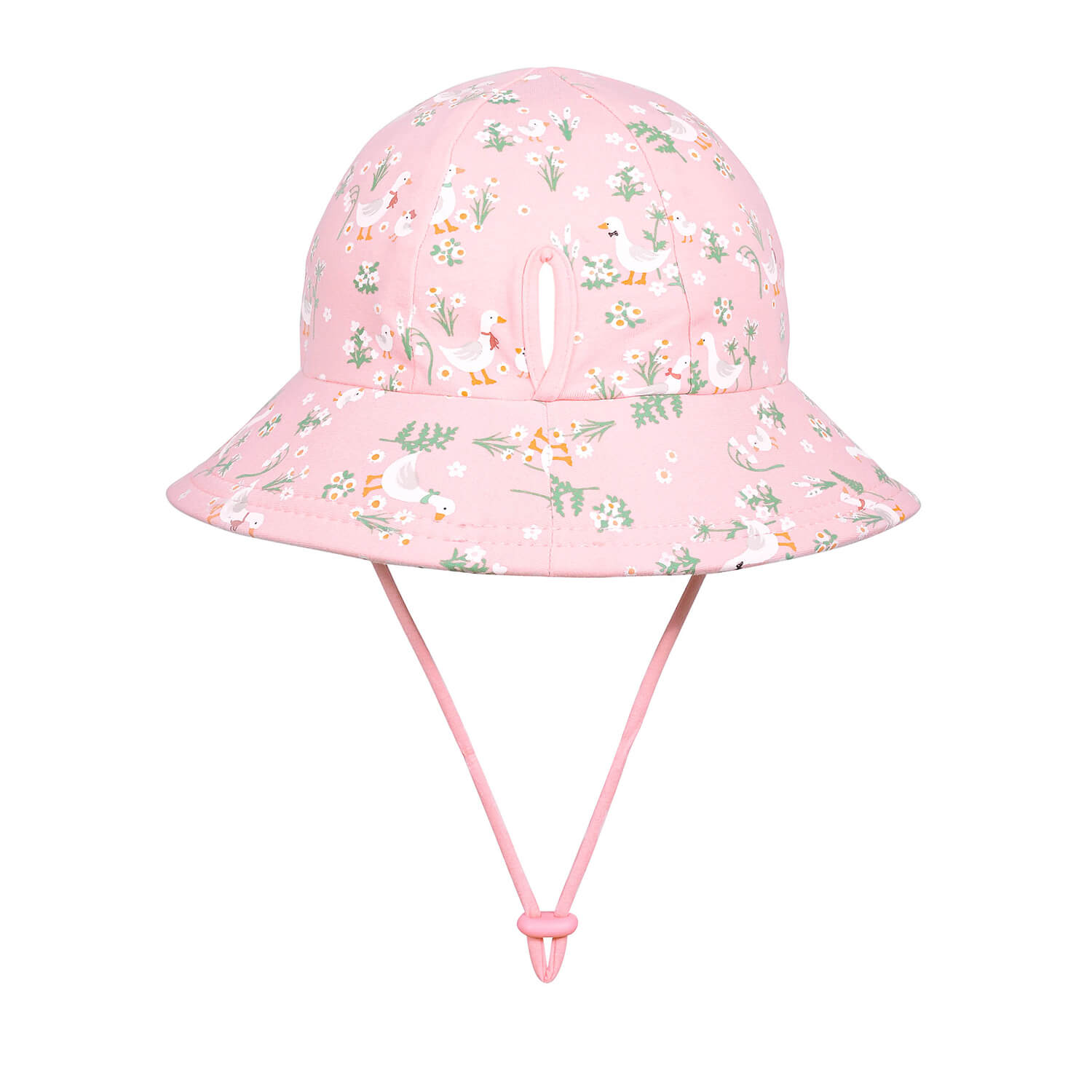 The Bedhead Ponytail Bucket Hat in Quackers blends practical sun safety with sweet styling. Featuring our signature ponytail slit, this design adds a little extra freedom and airflow for warm outdoor play.