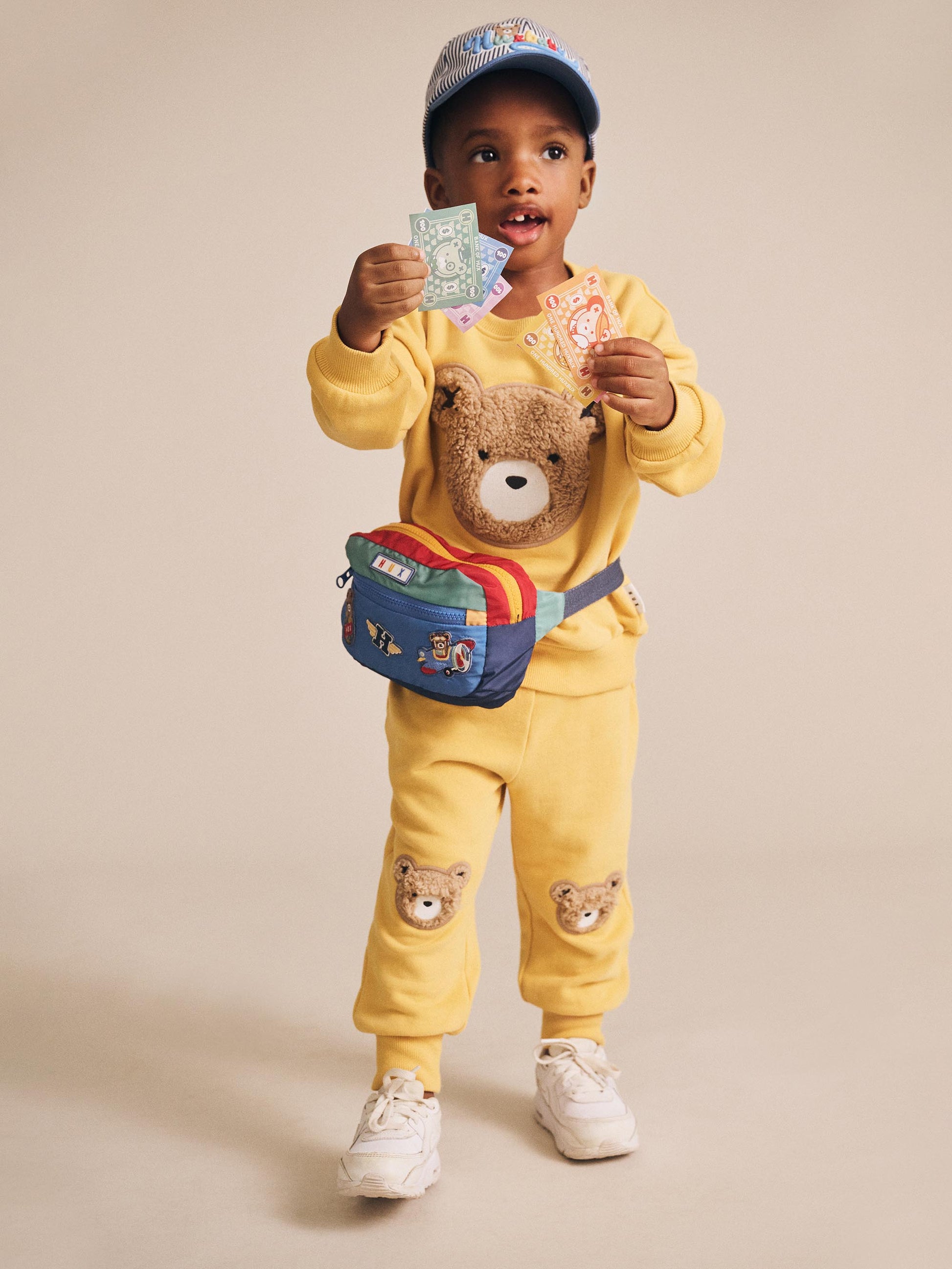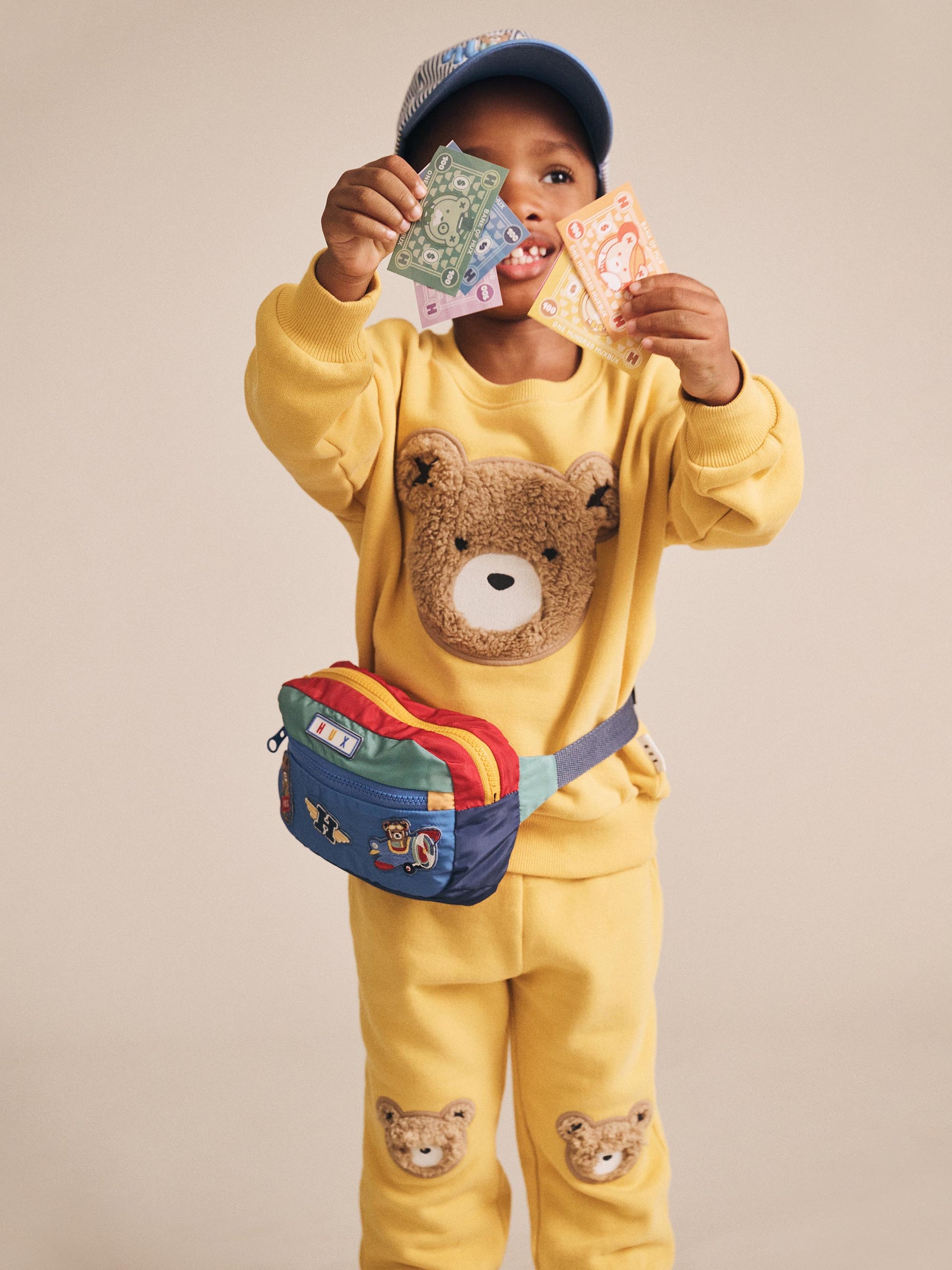 THE best bumbag to stash snacks, pebbles or any other playground treasures! Retro 90s style colour block design, featuring Hux aviator badges. Includes "Hux Bux" play money inside.