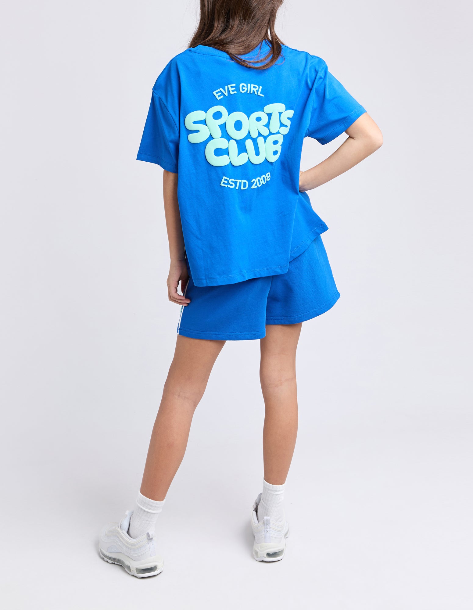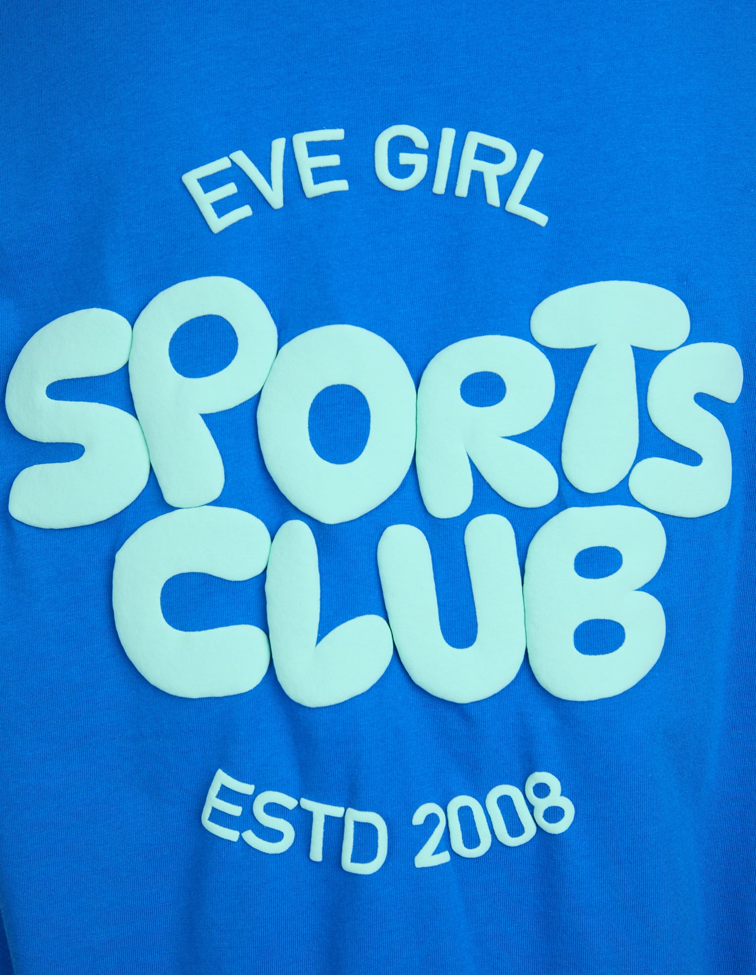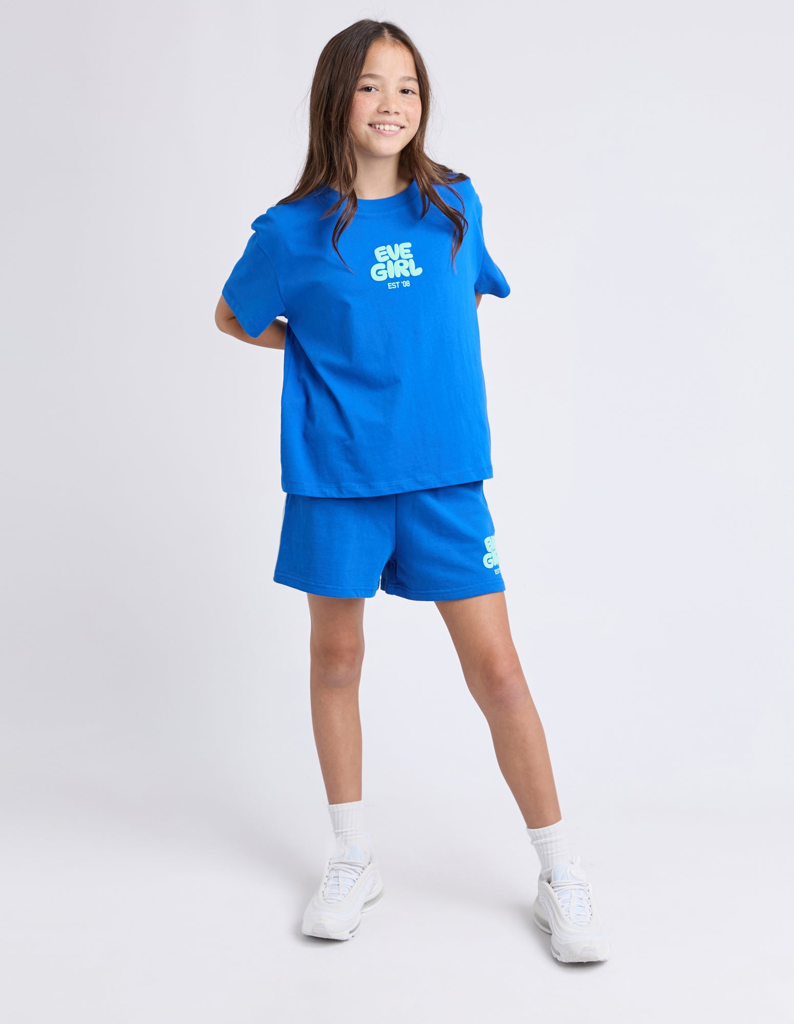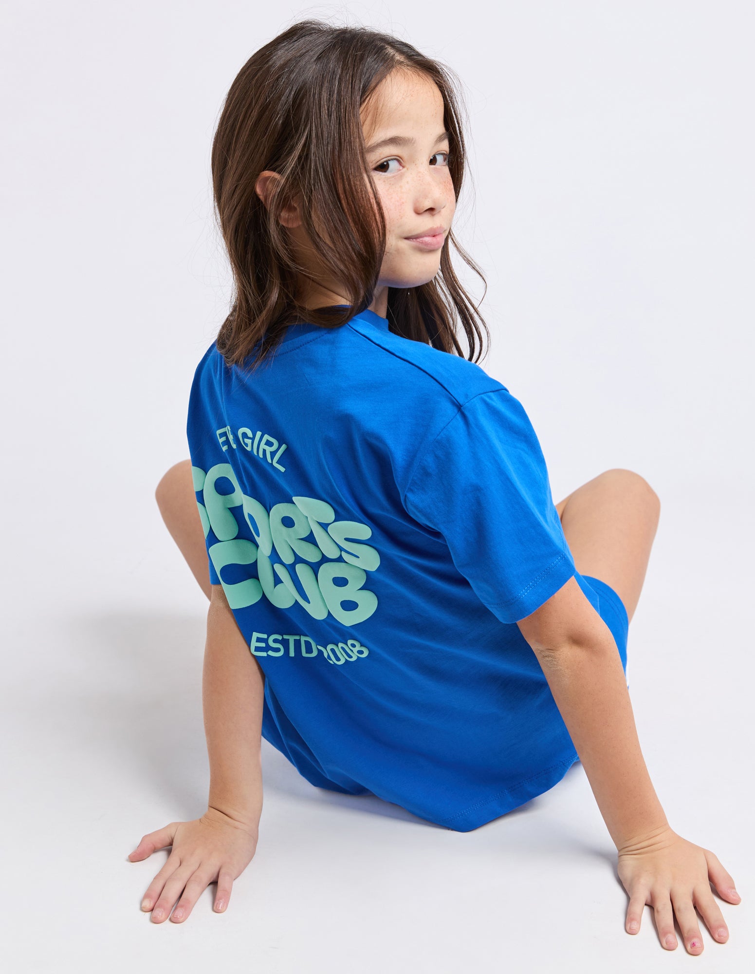 The Sports Club Tee by Eve Girl is the essential summer tee. This style combines bright colours and puff print artwork on an oversized tee block to create a fun comfy style, perfect for any wardrobe. Pair back with the matching fleece shorts for a sporty, on-the-go look.