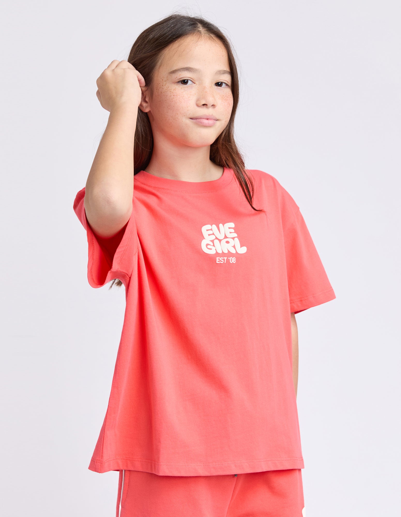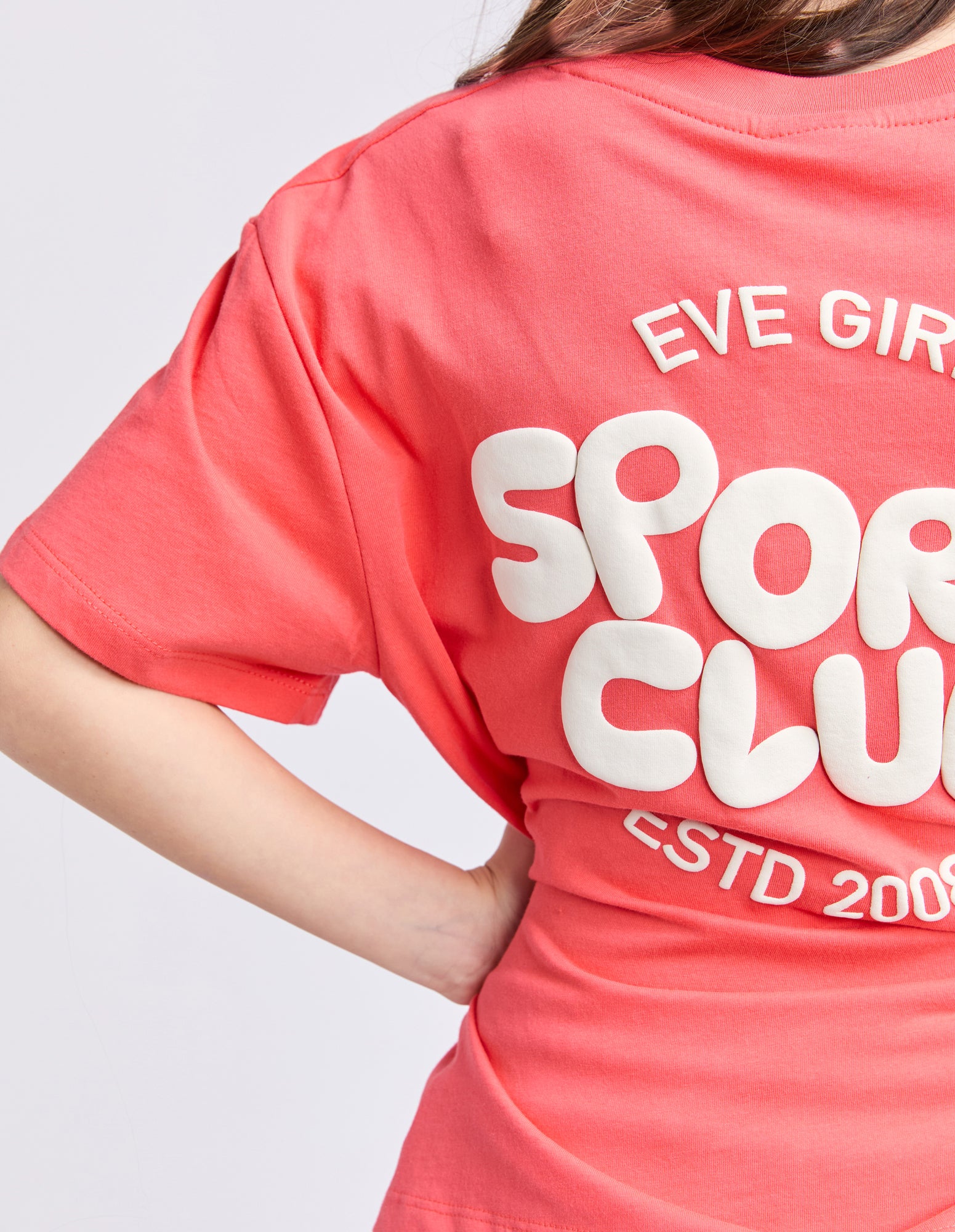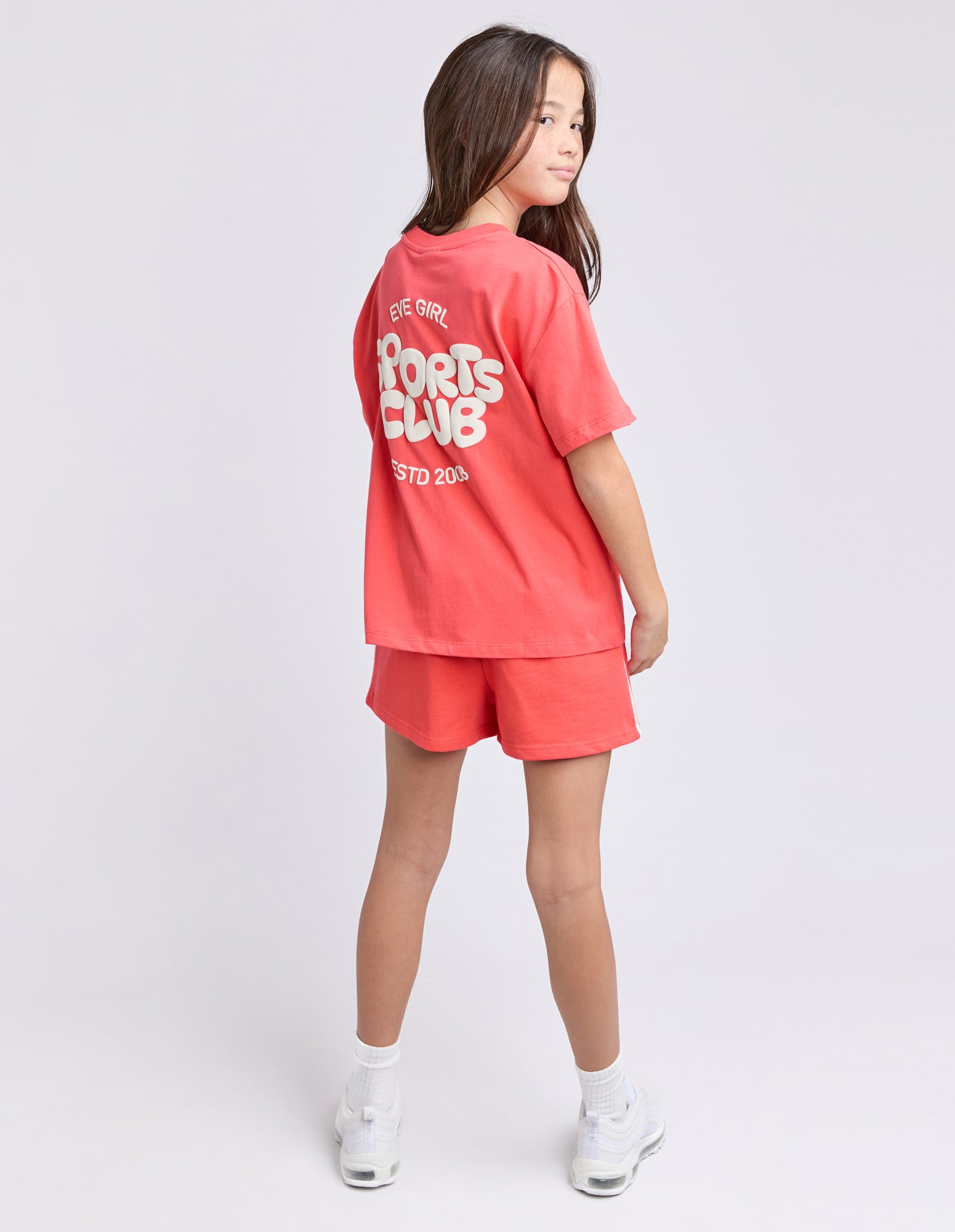The Sports Club Tee by Eve Girl is the essential summer tee. This style combines bright colours and puff print artwork on an oversized tee block to create a fun comfy style, perfect for any wardrobe. Pair back with the matching fleece shorts for a sporty, on-the-go look.