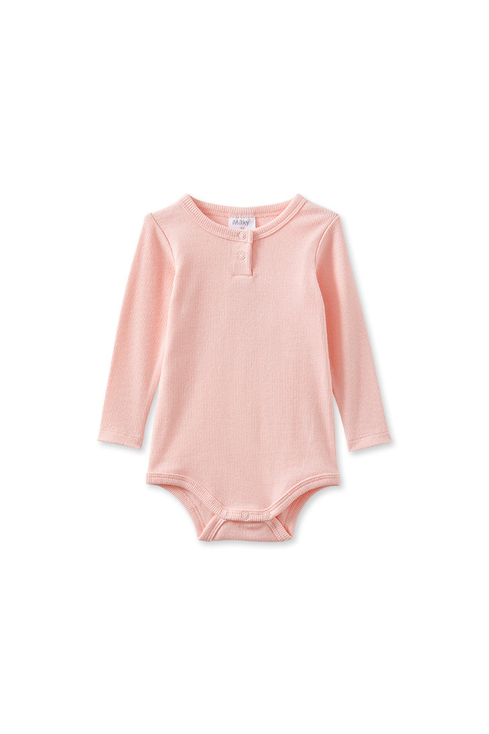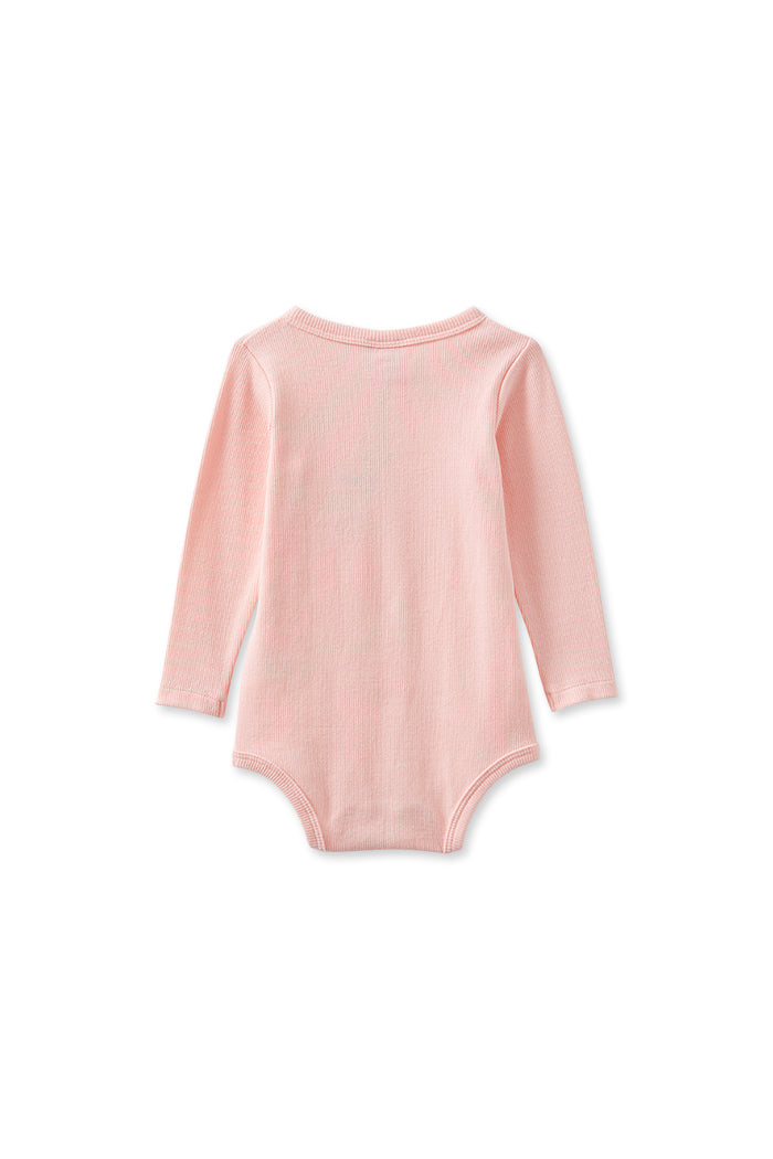 Milky Clothing Whisper Rose Bubbysuit—a versatile staple for any season! This charming bubbysuit features an adorable snap detail at the center front, adding a touch of style to your little one’s wardrobe.