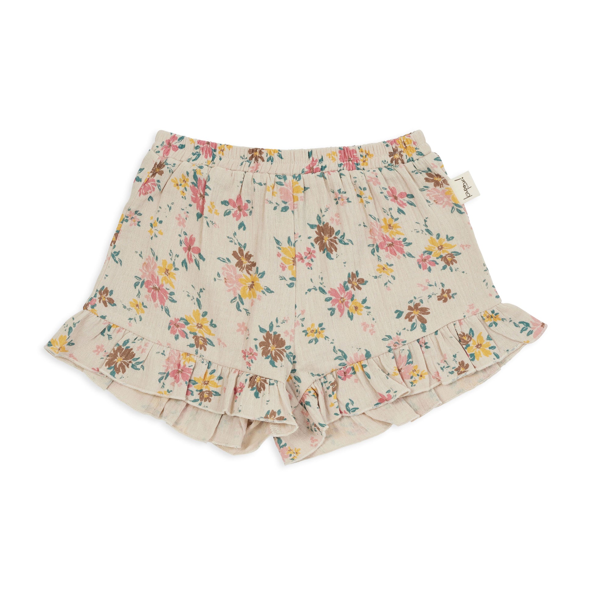 Get into the spring spirit with our Yasmine Frill Shorts! These fun shorts feature a playful frill design and a vintage inspired floral print. Perfect for wearing with the Rosette Rib tee. Get ready to bloom in style!